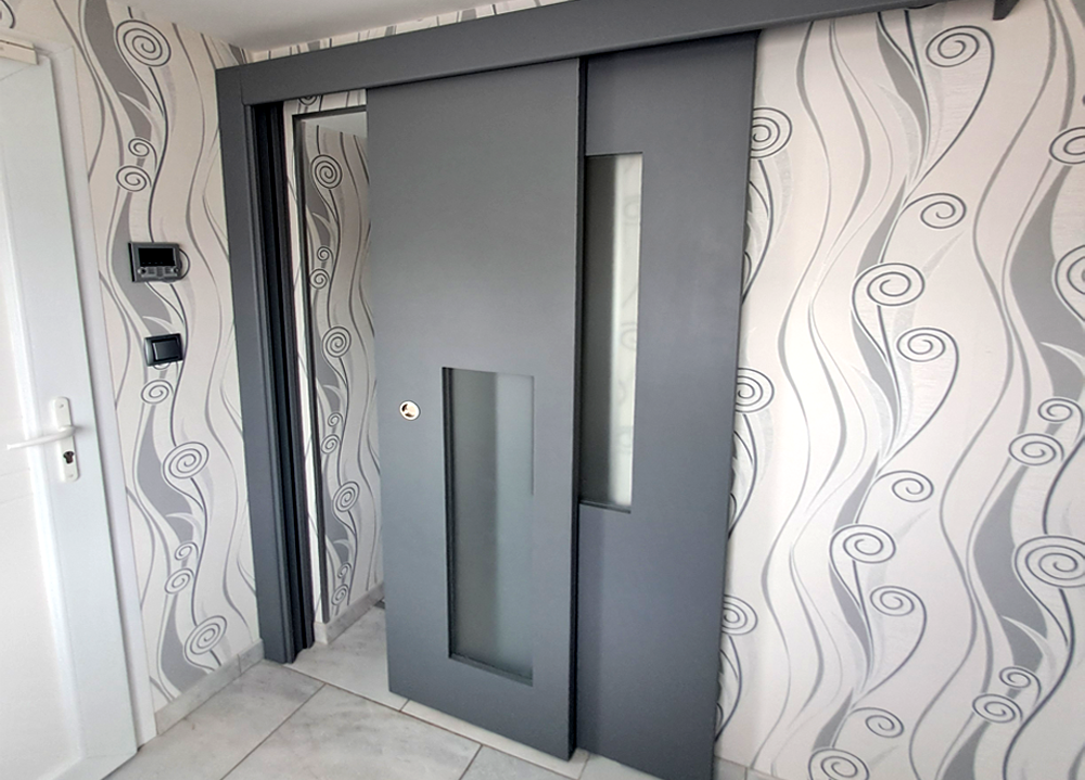 L’absence de rail au sol garantit un passage totalement dégagé. Cette conception améliore le confort d’usage au quotidien, facilite l’entretien et convient parfaitement aux zones de passage fréquent comme l’entrée ou le couloir, tout en renforçant la sobriété visuelle de l’installation.