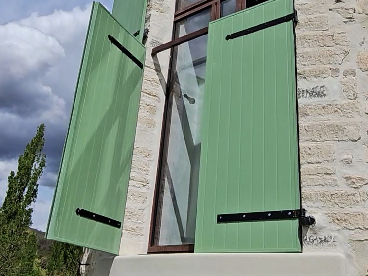 Sous la référence W00002210, Gilles a équipé ses larges volets battants en aluminium. Ces panneaux imposants et lourds, difficilement manœuvrables depuis l’intérieur, nécessitaient une solution fiable et robuste pour un usage quotidien. Grâce à l’automatisme filaire SLID’UP URANUS, l’ouverture s’effectue désormais sans effort et en toute fluidité, tout en préservant l’aspect traditionnel des volets battants.