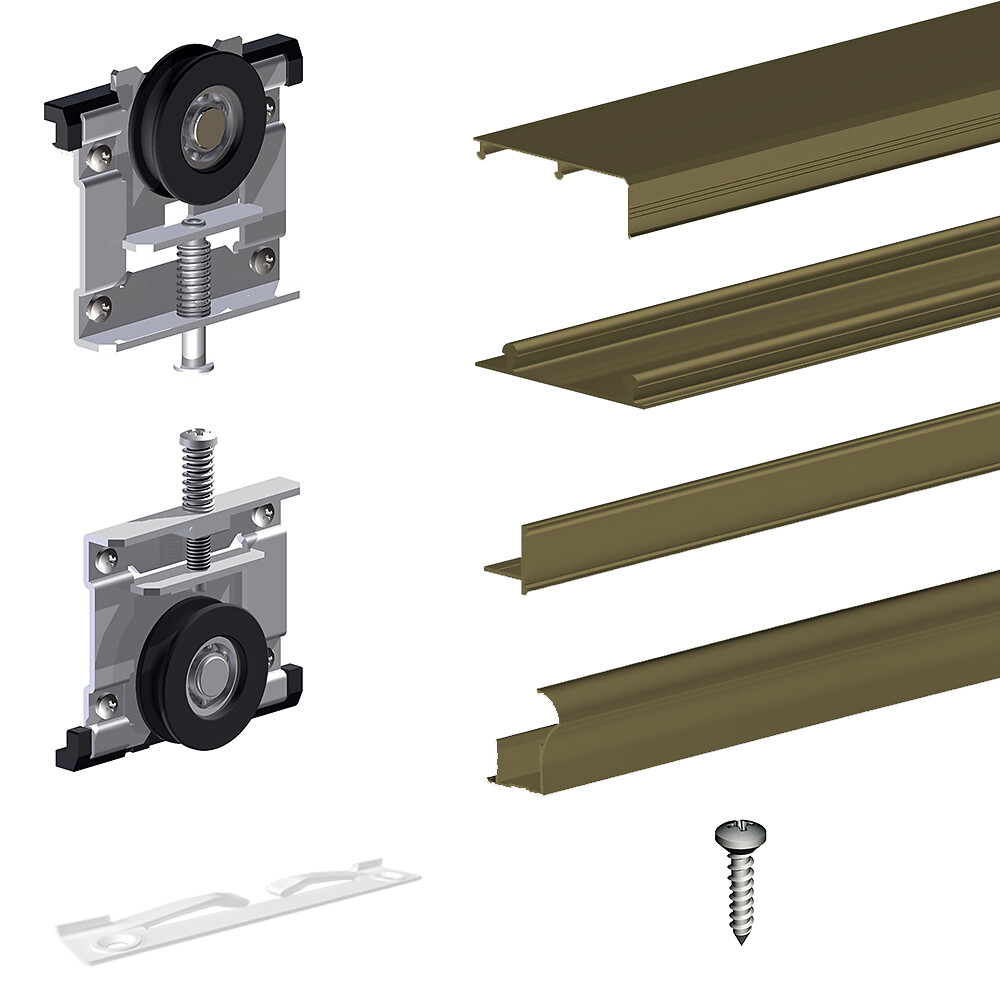 Système coulissant SLID'UP 220 aluminium anodisé bronze pour 2 portes de placard 18 mm - rails 1,8 m - 70 kg - Coulissant au sol.
