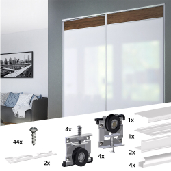 Système coulissant SLID'UP 220 aluminium anodisé blanc pour 2 portes de placard 18 mm - rails 1,8 m - 70 kg - Coulissant au sol.